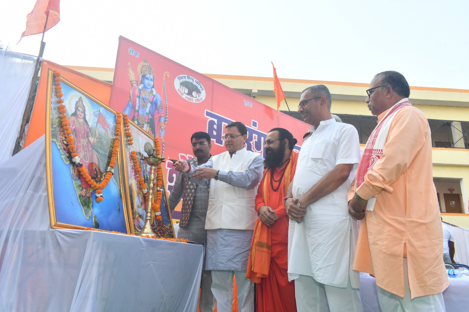 मुख्यमंत्री श्री पुष्कर सिंह धामी ने शुक्रवार को सरस्वती विद्या मन्दिर इण्टर कॉलेज मायापुर में विश्व हिन्दू परिषद के अन्तर्गत बजरंग दल के नेतृत्व में आयोजित विगत 19 सितम्बर से बद्रीनाथ के माणा गांव से प्रारम्भ हुई ’’शौर्य जागरण यात्रा’’ के समापन कार्यक्रम में प्रतिभाग किया